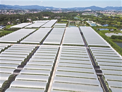 在花都区五星村中植智慧农业产业园,大棚鳞次栉比,棚内枝繁叶茂,蓝莓长势喜人