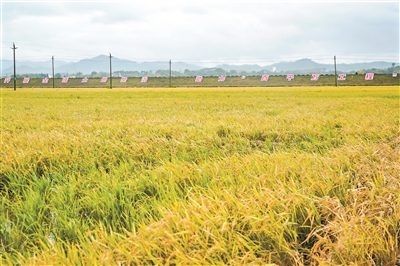 走进从化鳌头的万亩良田项目,经过全域土地综合整治试点,这里连绵的稻田一眼望不到尽头,阵风吹过,稻浪滚滚、稻香阵阵,远处“中国人的饭碗要牢牢端在自己手里”鲜亮而醒目。